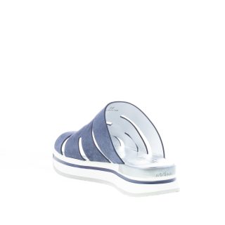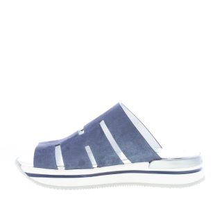 H 257 slide sandal with a blue baltic suede front maxi band and H design cut-outs. Ultra-light white Eva platform sole. Height 3,5 cm