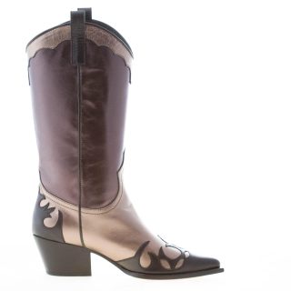 MARIA CRISTINA donna stivale texano in pelle laminata NERO e BRONZO. Tacco 5,5 cm