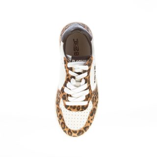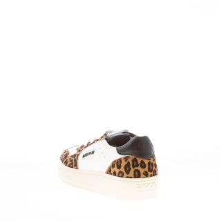 Sneaker Slam F54 realizzata in pelle bianca e cavallino maculato con etichetta brand cucita a lato e forature sulla punta.Talloncino brandizzato in pelle nera. Fodera in spugna. Suola in gomma