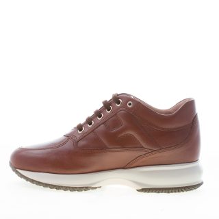 Interactive classic brown leather sneaker. Padded Hogan monogram on side. Removable footbed 1,2 cm. Rubber sole with a total 5,7 cm height