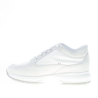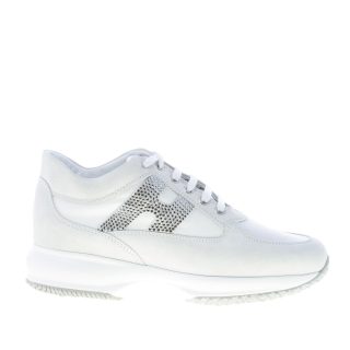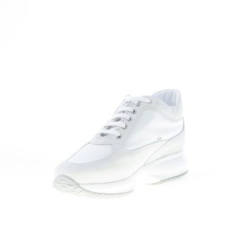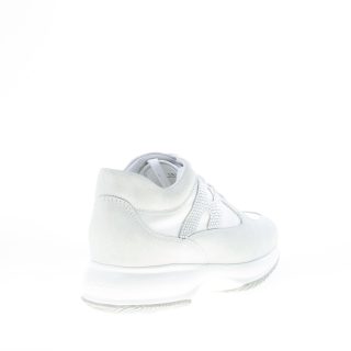 Sneaker Interactive in camoscio e tessuto tecnico bianco. Monogramma Hogan ai lati in strass. Fussbett estraibile