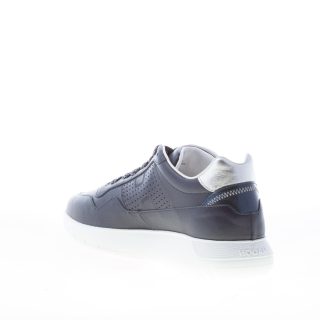 Interactive Cube blue leather sneaker with side perforated Hogan monogram and back detail in silver leather. Lamier effect lacing with standard blue laces in the packaging. Removable footbed 2 cm. Lightweight rubber white sole