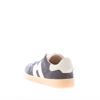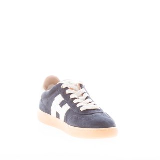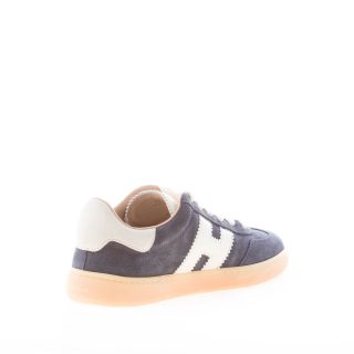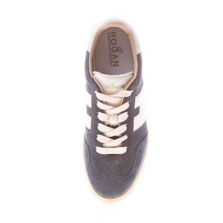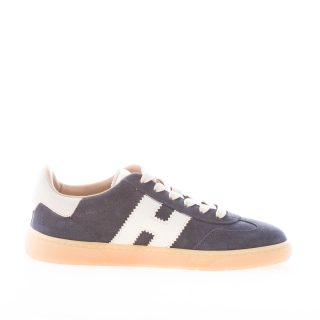 H647 blue suede Hogan Cool sneaker with beige suede detail at back. White leather Hogan monogram at sides. Removable memory foam footbed 0,5 cm. Rubber sole. Total height 3,2 cm