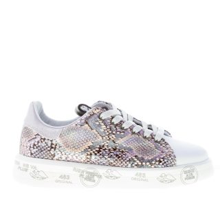 PREMIATA donna sneaker BELLE 5150 in pelle BIANCO più stampa rettile colorata