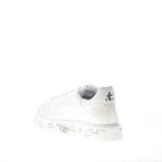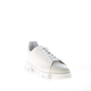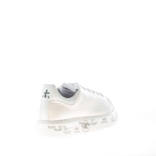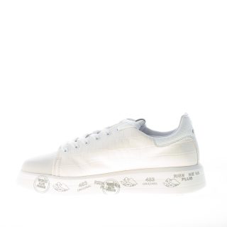 Sneaker BELLE 5385 realizzata in pelle stampa cocco avorio con inserto in pelle liscia sulla punta. Inserto tono su tono in stampa rettile con logo sul tallone. Suola a cassetta platform di 3,5 cm in micro ultra-leggera con stampe graffiti