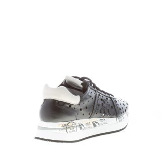Sneaker Conny 2965 in pelle traforata nera con dettaglio posteriore in pelle grigio chiaro. Iconico brand logo cucito