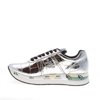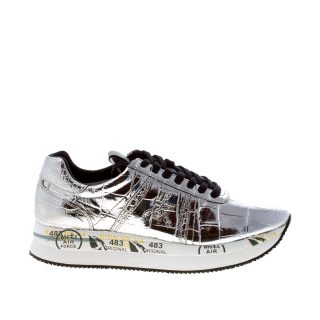Sneaker Conny 4818 realizzata in pelle laminata stampa cocco argentocon dettagli neri. Iconico logo brand in pelle