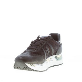 Black tech fabric and leather Conny 4821 sneaker with light grey leather detail at back. Removable internal footbed 1 cm. Raised rubber sole 4 cm with the typical prints of the brand