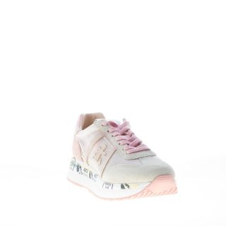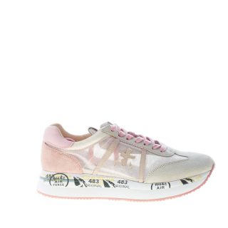 Pink and ice tone suede and transparent nylon fabric Conny 5208 sneaker with a pink leather