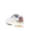 Sneaker Draked 036 realizzata in tessuto tecnico e pelle argento con dettagli in pelle e camoscio multicolore. Fussbett interno di 2,4 cm. Suola in gomma rialzata di 4 cm con le tipiche stampe del brand e cuscino d’aria incorporato. Portachiavi Premiata Sizey Crew incluso nella confezione