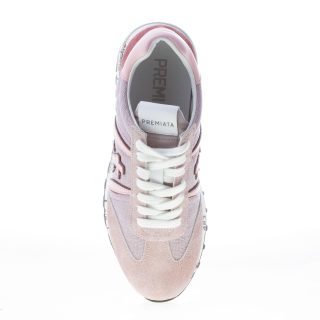 Sneaker Lucy 5102 realizzata in un mix di tessuto, camoscio e pelle su varie tonalità di rosa. Brand logo a lato realizzato in pelle rosa. Suola in gomma con le iconiche stampe del brand