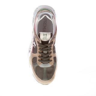 Sneaker MASE 5535 realizzata in un mix di camoscio grigio e tessuto tecnico nero con inserti in camoscio rosa antico e logo laterale . Spoiler in gomma verde con brand al tallone. Suola rialzata in gomma ed evo di circa 4 cm con le tipiche stampe graffiti