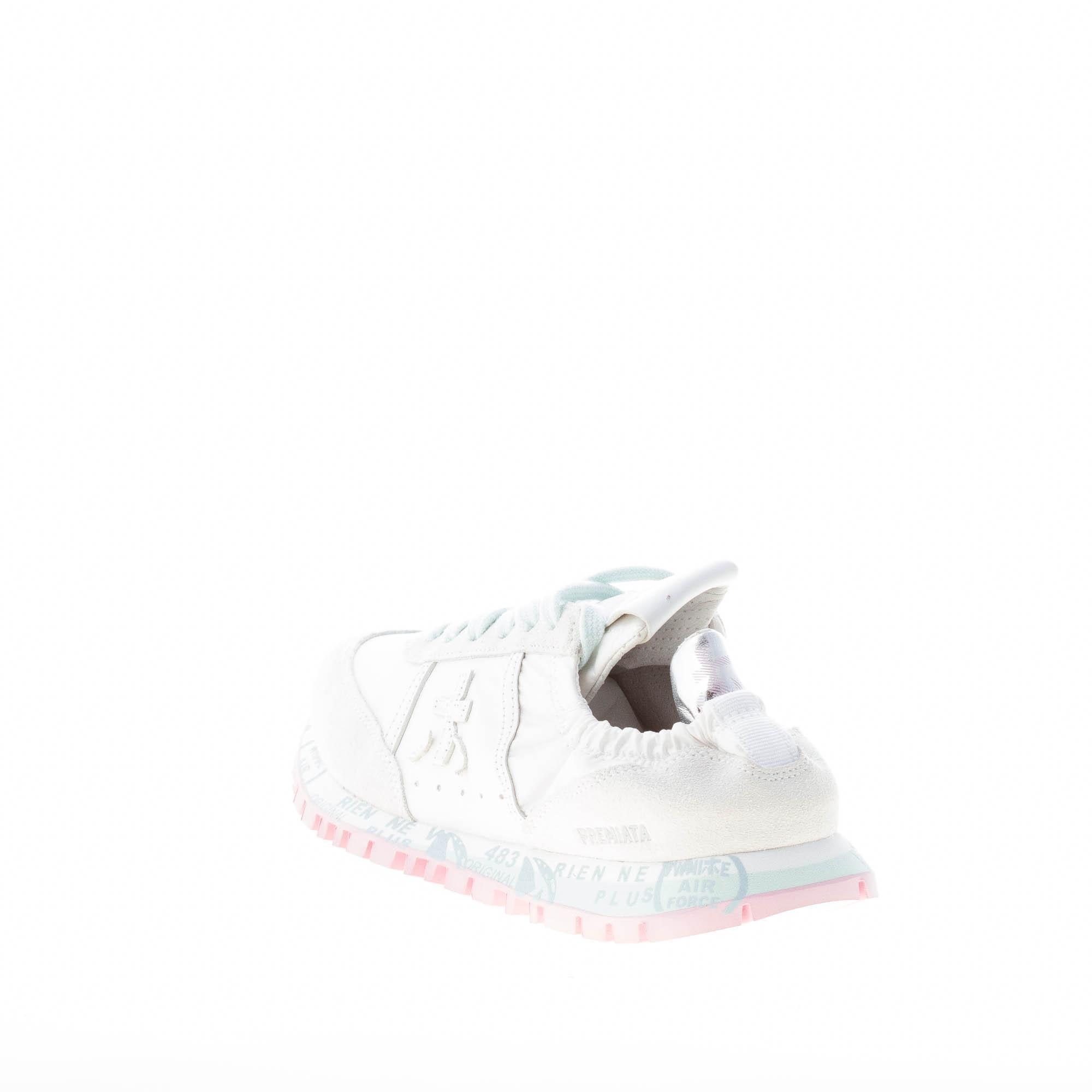 Ice White nylon fabric and suede SEAND 6251 sneaker with an elastic insert at the ankle. Silver detail at back. Internal removable footbed 1 cm. Lightweight 2,5 cm rubber sole with the typical prints of the brand