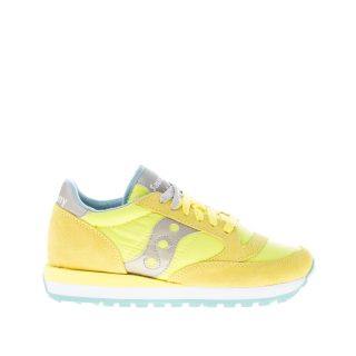 Sneaker donna Jazz Original in tessuto nylon e camoscio giallo più grigio. Stampa brand sul tallone e sulla linguetta.