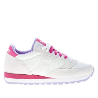 Off White nylon fabric and suede Jazz Original sneaker with berry details. Logo print at tongue and heel. Lightweight multicolor rubber sole