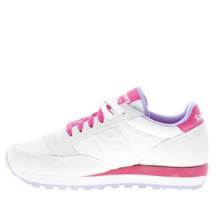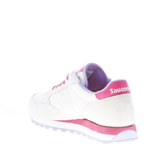 Sneaker donna Jazz Original in tessuto nylon e camoscio bianco più dettagli vinaccia. Stampa brand sul tallone e sulla