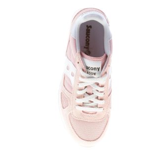 Pink tech fabric and suede Shadow Original sneaker with white leather details. Grey rubber insert at back. Logo print at tongue and heel. Lightweight two-tones rubber sole