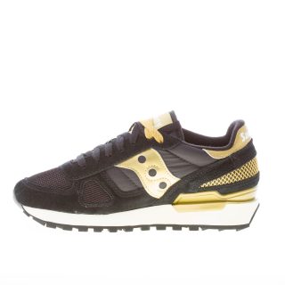 Sneaker donna Shadow Original in tessuto e camoscio nero con dettagli in pelle oro. Rifiniture in gomma dorata. Stampa brand sul tallone e sulla linguetta. Suola in gomma leggera