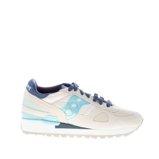 Sneaker donna Shadow Original in tessuto e camoscio grigio chiaro con dettagli in pelle blu e azzurro. Rifiniture in gomma al tallone. Stampa brand sul tallone e sulla linguetta. Suola in gomma leggera bicolore