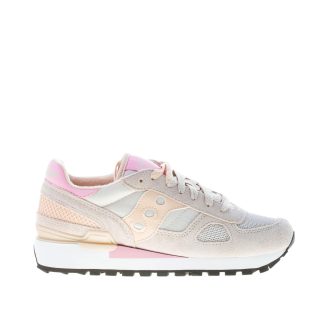 Sneaker donna Shadow Original in tessuto tecnico e camoscio beige con dettagli in pelle e tessuto rosa. Rifiniture in gomma al tallone. Stampa brand sul tallone e sulla linguetta. Suola in gomma leggera bicolore
