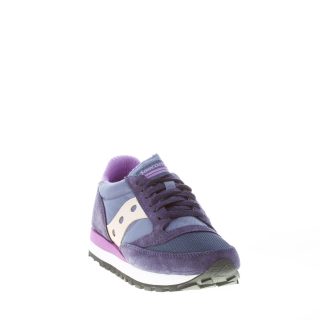 Blue navy and purple nylon fabric and suede Jazz 81 sneaker with golden details. Logo print at tongue and heel. Original tongue badging from 1981. Upgraded full-cushion sockliner. Lightweight multicolor rubber sole