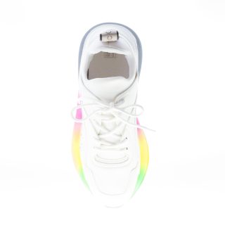 Sneaker Eclypse Rainbow realizzata in Alter nappa, Alter suede e tessuto neoprene bianco. Allacciatura frontale, dettaglio perforato ai lati e pull tab posteriore in tessuto con logo. Suola arcobaleno rialzata di circa 5 cm. Suola in gomma