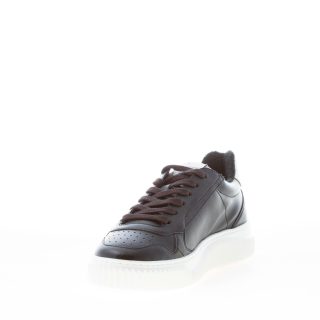 Sneaker Hybro City, ispirata alla eco-sostenibilità, realizzata in pelle vegetale di mela nera con talloncino bianco e fodera in cotone riciclato. Dettaglio cucito a lato indicante brand e modello. Suola in EVA super leggera bianca con scanalature