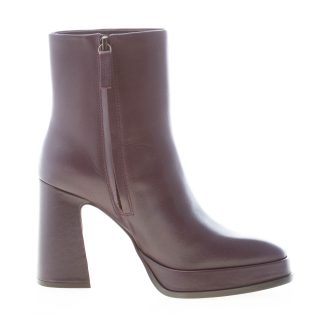 Stivaletto Alyx realizzato in pelle colore prugna con punta leggermente squadrata e chiusura con zip sul lato interno. Platform rivestito di 2 cm. Tacco svasato rivestito in pelle di 9,5 cm. Suola in cuoio con inserto antiscivolo in gomma.