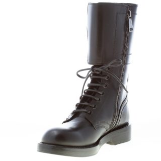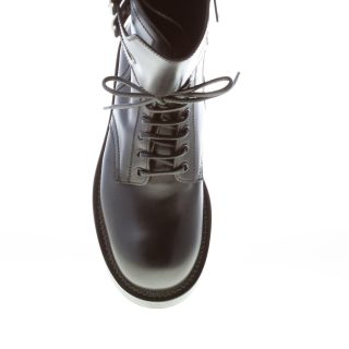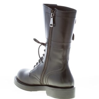Black polished calfskin Bernini combat boot with a monk-strap fastening. Front lacing and side ease dress zip. Triple leather sole with rubber anti-slippering insert. Heel 3 cm