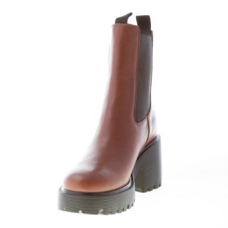 H584 Chelsea brown leather round toe ankle boot with ease dress elastic bands at sides. Memory foam footbed for comfort. Lug detailed rubber sole with 3 cm platform. Heel 7 cm