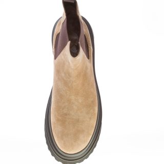 H629 stivaletto Chelsea Bye Trekking realizzato in morbido camoscio colore cammello con inserti elastici laterali e tirante posteriore personalizzato. Fussbett in memory foam per un maggiore comfort. Suola chuncky in Eva leggera. Altezza tacco 5 cm.