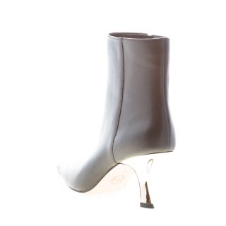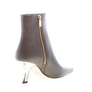 Black soft leather pointy toe Luna ankle boot with gold tone metal zip fastening at the internal side. Gold sculptural heel 9 cm. Leather sole