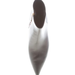 Stivaletto a punta Luna realizzato in morbida pelle nera con chiusura con zip in metallo dorato sul lato interno. Tacco scultoreo lamellato color oro di 9 cm. Suola in cuoio