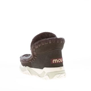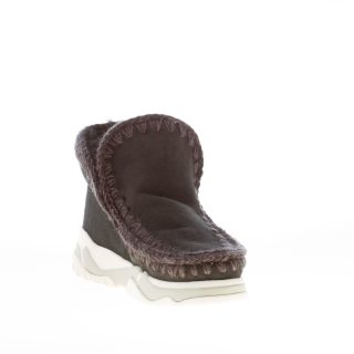 Black double-face shipskeen Eskimo Trainer ankle boot. Shaft height 14,5 cm. Handmade wool stitchings. Kightweight Eva and rubber outsole with approximately 4 cm height at the heel