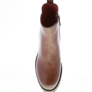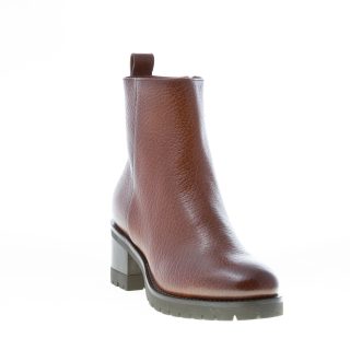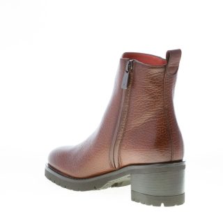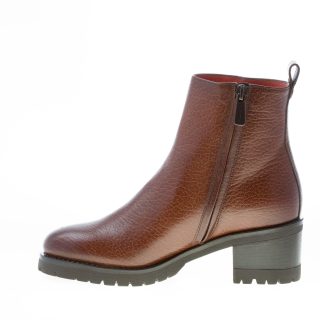 Brown hammered leather Made in Italy ankle boot with a plain toe and a zip fastening on the internal side. Lug detailed rubber sole with a 5 cm heel