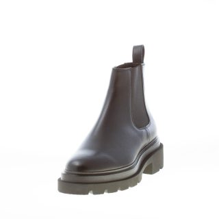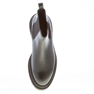 Black fine leather chelsea boot with a wide shape, a plain toe and ease dress elasticized bands at sides. Lug rubber sole. Heel 3,5 cm