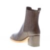 Tronchetto realizzato in raffinata e morbida pelle marrone cioccolato con inserti elasticizzati ai lati, punta a mandorla e cuciture in rilievo a contrasto. Pull-tab posteriore. Tacco largo in cuoio di 6,5 cm. Suola in para