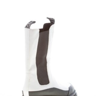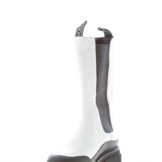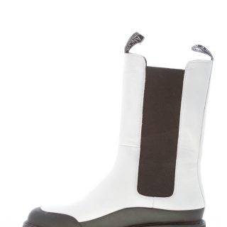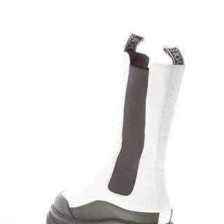 Stivaletto a tre quarti gamba elasticizzato in pelle bianca con inserti elasticizzati neri. Inserto in gomma nera sulla punta e ai lati. Suola in gomma con profilo dentellato