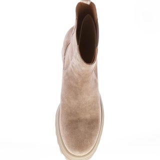 Grey suede Claire chelsea boot with side ease dress elasticized bands. Branded pull-up. Rubber platform sole with approximately 6 cm heel.