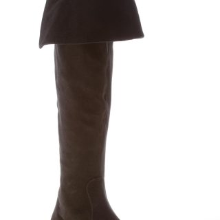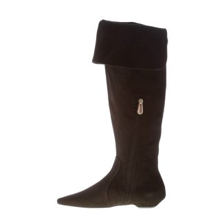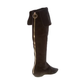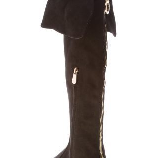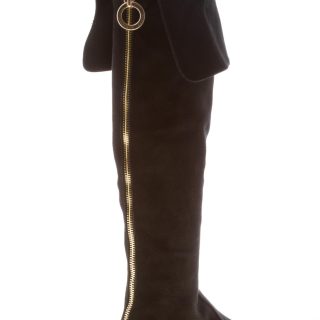 Black suede Salt over-the-knee boot with a pointy toe and a side ease dress half leg zip fastening. Back detail with a maxi decorative golden metal zip and branded ring. Exposed stitchings on the vamp. Heel 1 cm. Leather sole with rubber anti-slippering insert