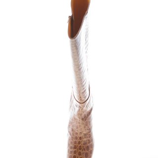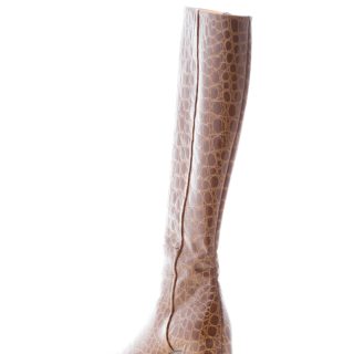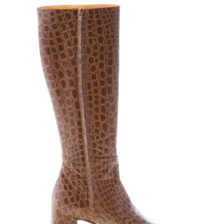 Brown soft croco-embossed leather boot with a slighlty squared toe and a zip fastening. Made in Italy. Ultra-flexible rubber sole. Heel 5,5 cm