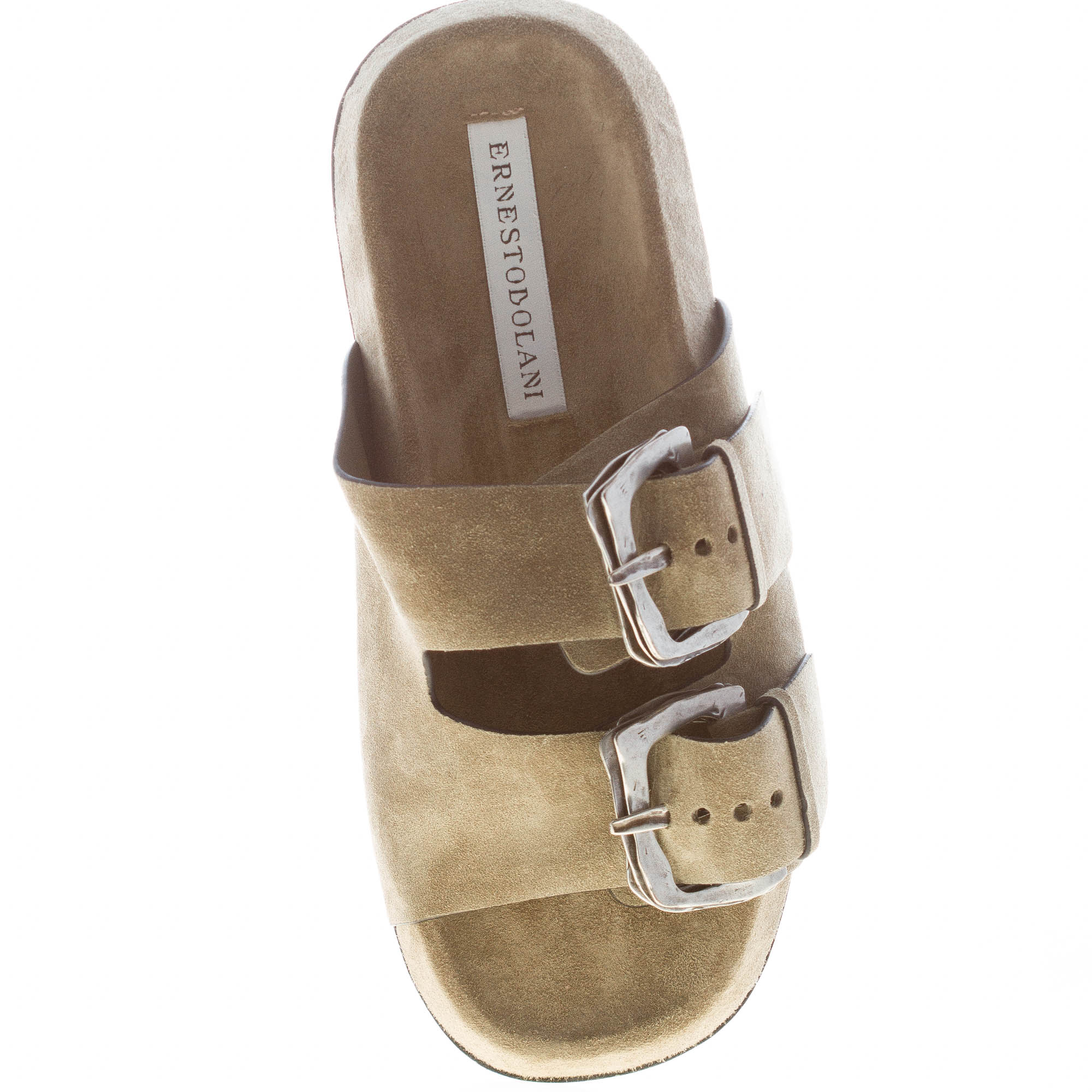 ERNESTO DOLANI donna sandalo ciabatta flatfform Kazar 03 in camoscio SALVIA con doppia fascia e fibbie