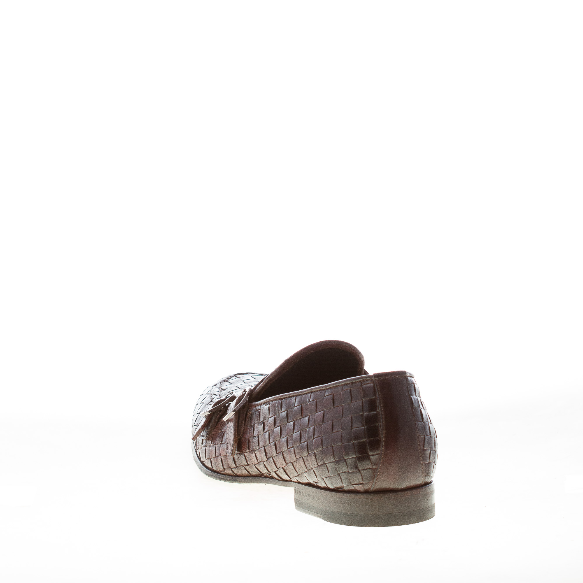 JEROLD WILTON uomo scarpa con doppia fibbia in pelle intrecciata TESTA DI MORO. Suola cuoio