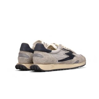 Sneaker Hype 106 realizzata in un mix di camoscio graffiato e tessuto nylon grigio con dettaglio in camoscio nero a lato e talloncino in pelle gommata nera con il brand logo. Plantarino estraibile. Suola bicolore in eva vaniglia e gomma nera alta circa 3,2 cm