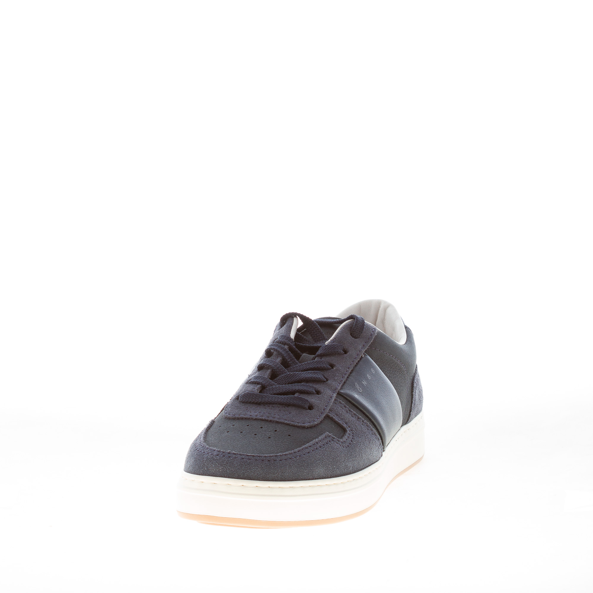 Blue leather and nubuk  H668 H-TV sneaker with a blue padded leather detail at sides and HGN86 logo. Internal memory foam footbed. Rubber sole with approximately 3,5 cm height