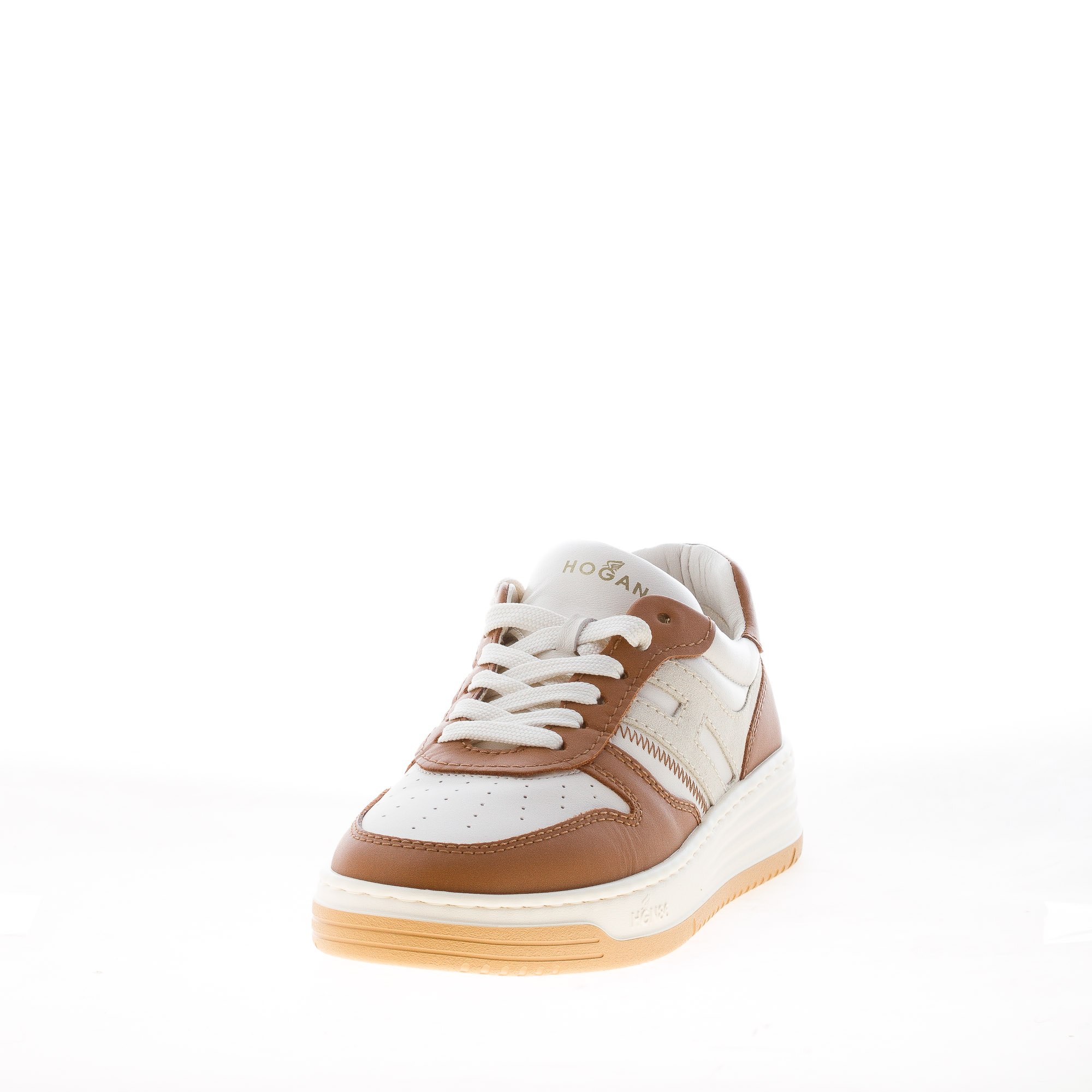 HOGAN donna sneaker H630 Basket in pelle e camoscio AVORIO e CUOIO