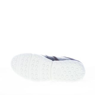 Blue smooth elegant leather light-weight sneaker with tech fabric details and a leather logo patch at tongue. Tod’s monogram stitched at sides. Removable footbed. White contrasting rubber sole with exposed “gommini”