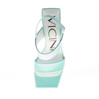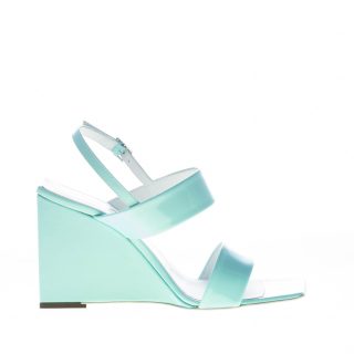 VICINI sandalo zeppa in vernice TURCHESE. Tacco 9 cm