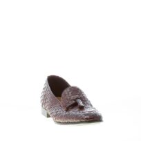 GREEN GEORGE uomo mocassino in pelle intrecciata TESTA DI MORO con nappine. Suola in cuoio