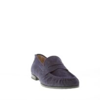 GREEN GEORGE uomo mocassino penny in camoscio BLU NOTTE. Suola cuoio
